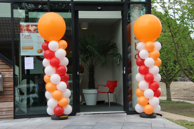Dit kan met een ballonpilaar of ballonnenboog voor de deur.